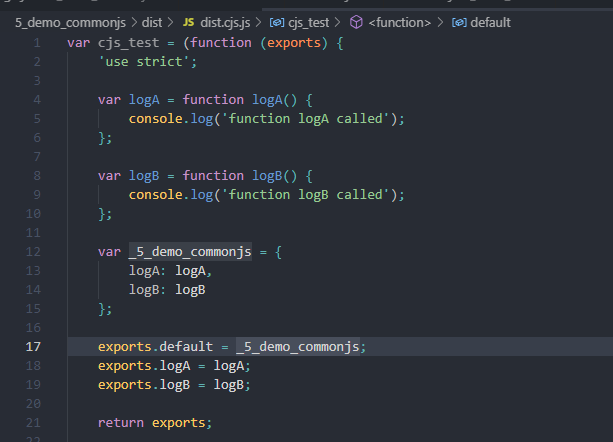 如果在demo0中的index.js文件中把logA()改成export default logA(),那么rollup最后的打包结果就会是