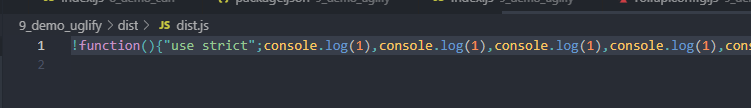 显示出这条信息之后,我们发现目录下已经多出了一个 dist.js 文件,打开文件,我们发现里面的代码是这样的