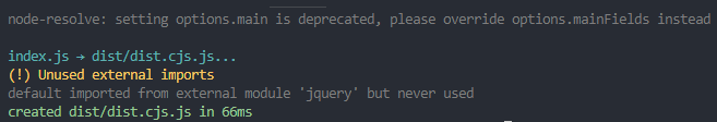index.js是我们的入口文件 dist.js是我们的输出文件 -f es 表示--format es,打包输出格式为es格式,"output.format", which can be one of "amd", "cjs", "system", "esm", "iife" or "umd" -o 表示输出文件的路径,在 -o 后面跟着的 dist.js 就是我们要生成的最终打包文件了。 其实这里本来应该加上一个参数-i,用来表示入口文件的路径,但rollup是会把没有加参数的文件默认为是入口文件,因此我们在这里省略了这个参数