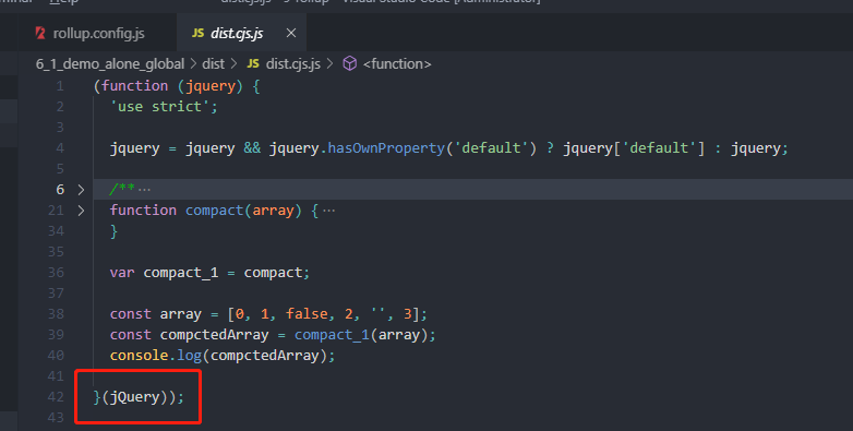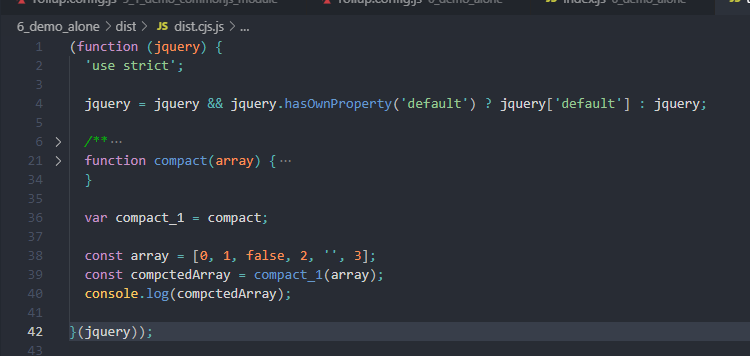 4. 进阶:当rollup配置文件最终输出的不是一个对象而是一个数组时,rollup会把每一个数组元素当成一个配置输出结果,因此可以在一个配置文件内设置多种输出配置