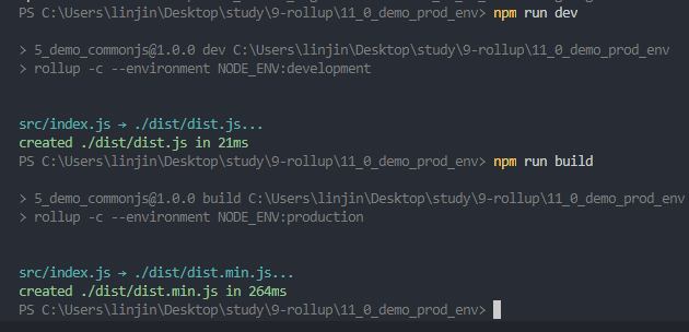 我们分别运行两个npm scripts命令,查看打包的结果: