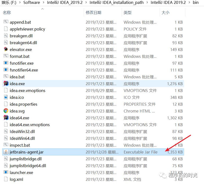 下载补丁文件 jetbrains-agent.jar 并将它放置到 idea安装目录的\bin目录下