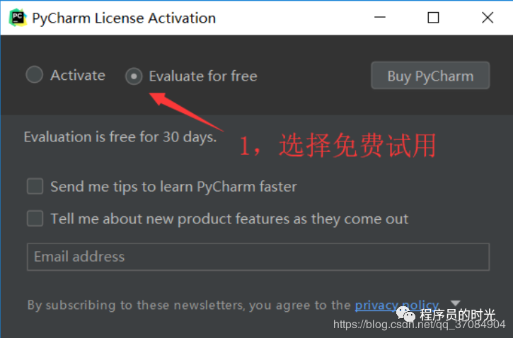 进入idea软件界面后,点击激活窗口的“Evaluate for free”免费试用;