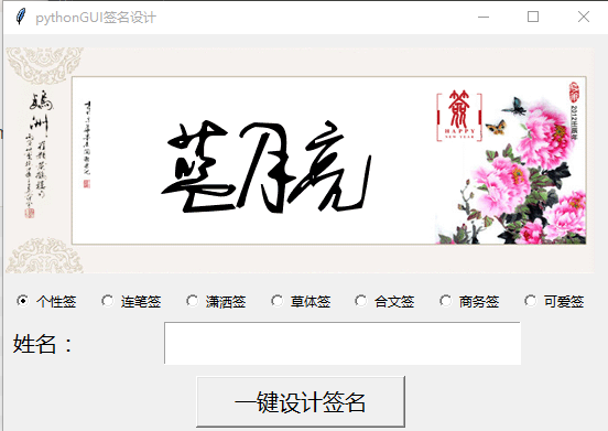 root.title('pythonGUI签名设计')