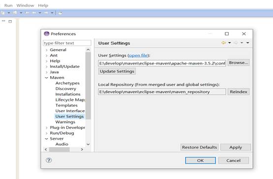 1、 window—preference:进行sever及maven配置;