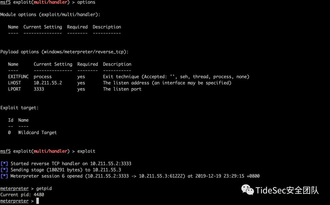 msf5 exploit(multi/handler) > set lport 10.211.55.2