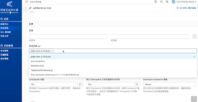 一些用户有自定义依赖且无法通过 fat jar 解决问题。举个例子,A用户有自己的main Jar和一些其他的Jar,这些Jar的应用场景不一样,那么首先需要在资源管理页面上传Jar包,上传完成之后就可以在页面使用该文件。