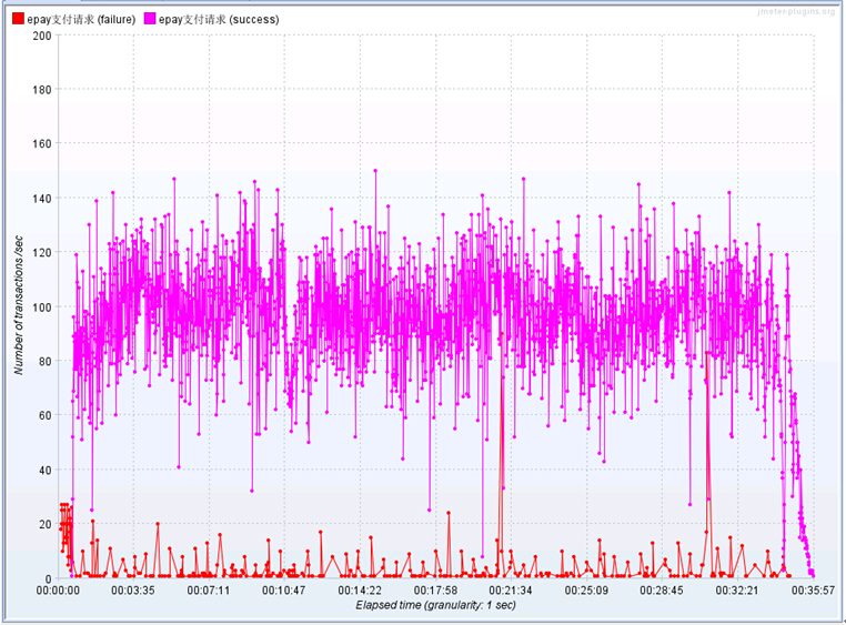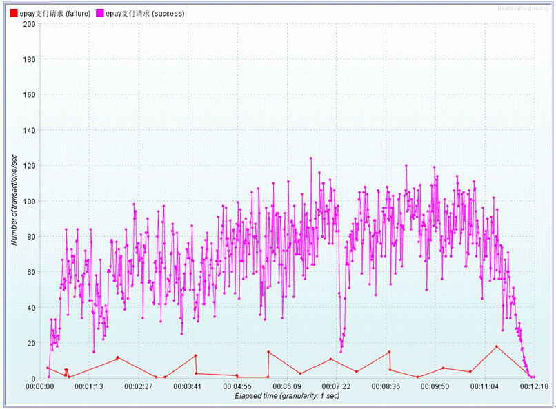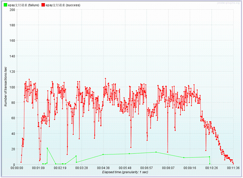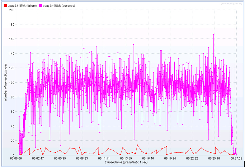 本次采用apache的开源测试工具jmeter,采用本地动态拼装请求数据并通过http协议post方式发送支付请求。并采用650张测试银行卡测试,其中大概有30张存在“无足够的存款”和“受限制的卡”情况。