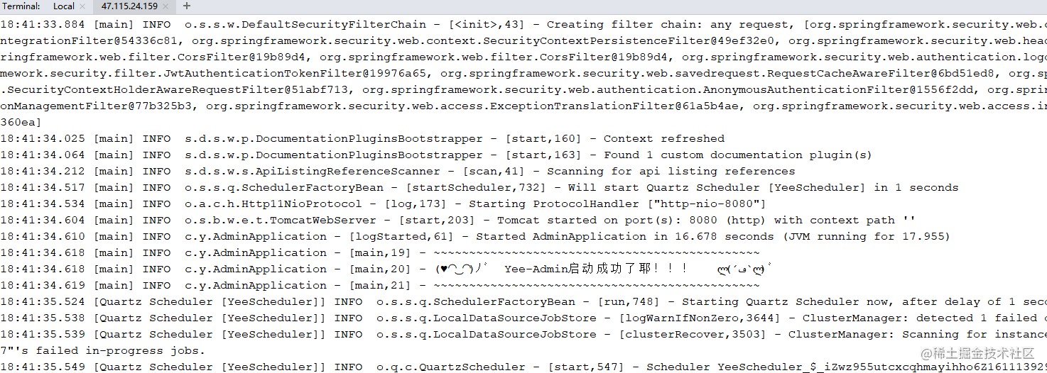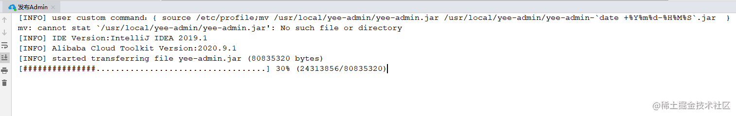 上传成功之后执行了service.sh脚本,我们可以看到远程服务器上的启动日志