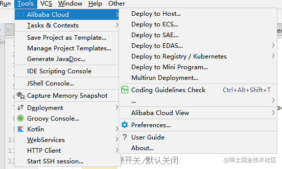 我们可以看到Tools有Alibaba Cloud 选项了,而我们需要用的是Deploy to Host...这个功能