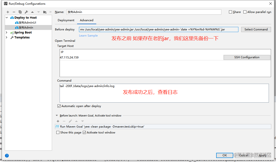 点击Deploy to Host,如果你之前没有配置过服务器SSH信息,这里需要先进行配置