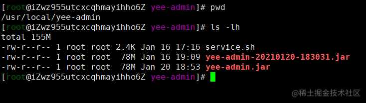 我们登录服务器,服务正常启动,同时原先的jar包也已经备份好了