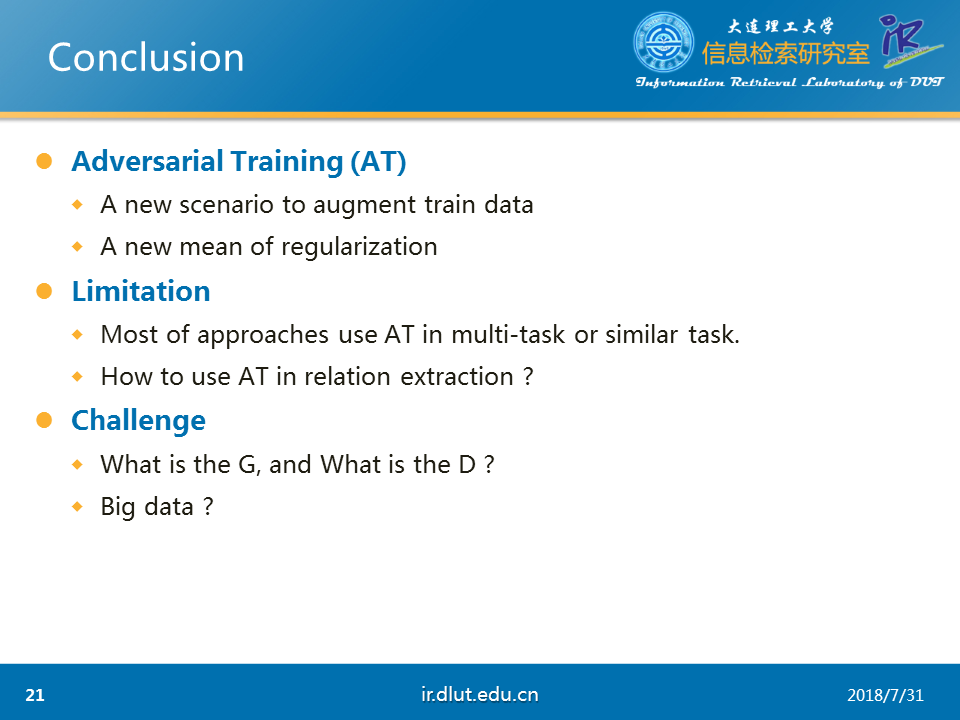 但是,缺点也很明显,现在的AT大多是用于迁移学习、多任务学习,这会涉及两个以上的领域,那么对于特定领域、单任务能够利用AT呢?能否在单任务的关系抽取中利用AT呢?