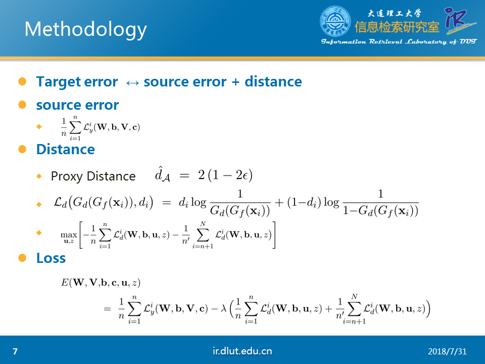 源误差可以通过神经网络来衡量,而距离可以通过代理距离来衡量,则整个领域适配的损失函数便是两者的相加。