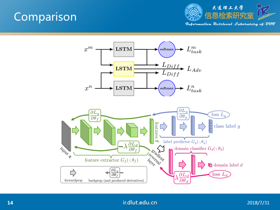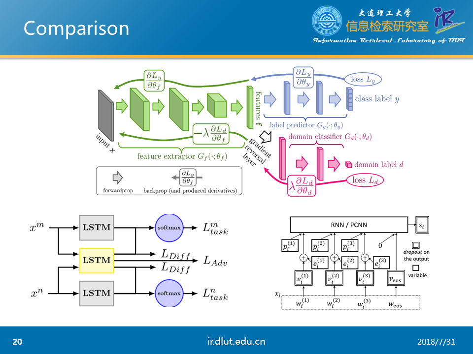 由于《Adversarial Multi-task Learning for Text classification》和《Domain-Adversarial Training of Neutral Networks》相识性,我们可以将这两者进行对比,可以发现本文仅仅是对后者的多类别扩充。
