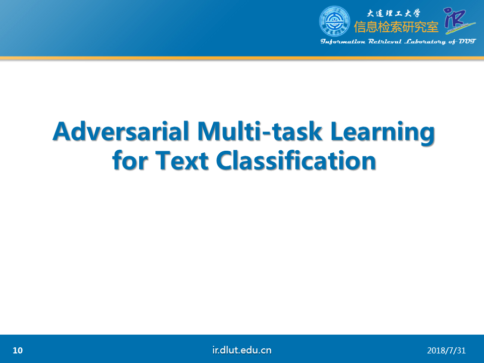 AT的另一个应用便是《Adversarial Multi-task Learning for Text classification》,本文可以看成是《Domain-Adversarial Training of Neutral Networks》的一种扩展,基本没有特别大的创新点。
