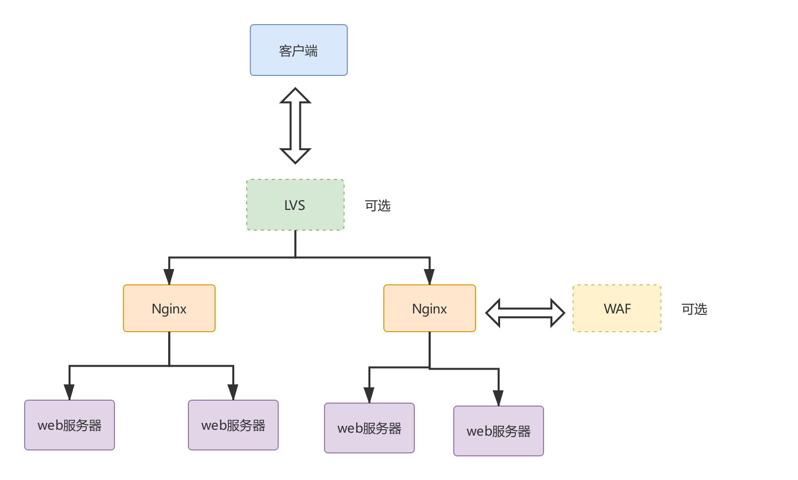 所以小型网站,nginx就足够,当流量足够大时,负载均衡成为瓶颈了,就可以在前面引入了LVS一层。