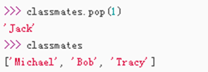 - 参数为 i 时(i 是索引位置),删除指定位置元素 pop(i)