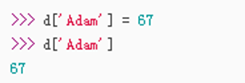 dict赋值: ① 初始化时指定 ② 直接通过key放入,多次对一个key赋值,后面的值会覆盖前面的。