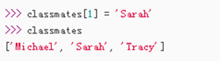 用索引访问每个位置的元素,索引送0开始,即 classmates[0]开始