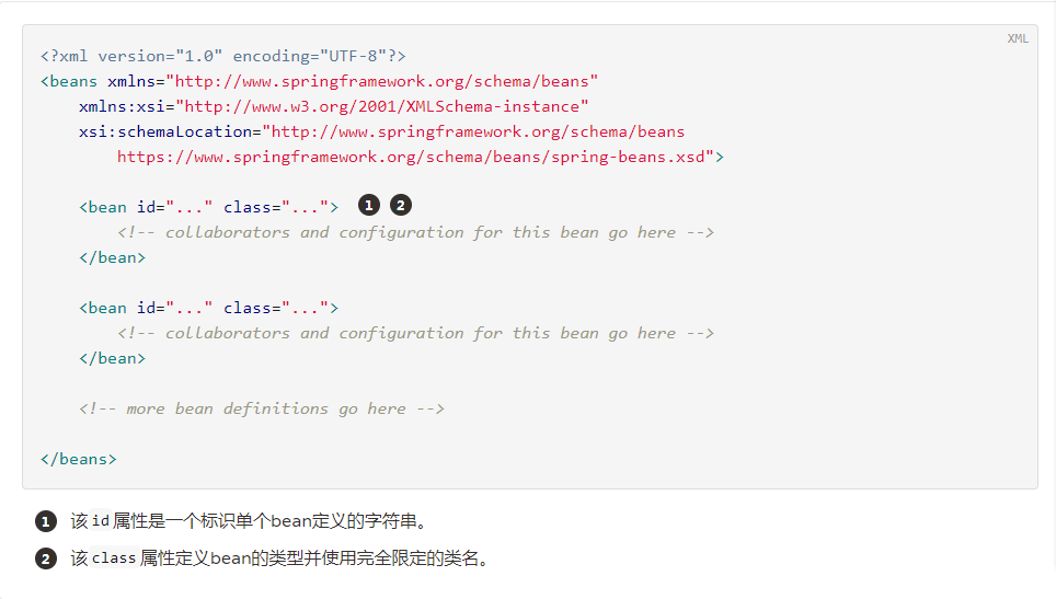 Spring IoC容器管理一个或多个bean。这些bean是使用您提供给容器的配置元数据创建的(例如,以XML <bean/>定义的形式 )。