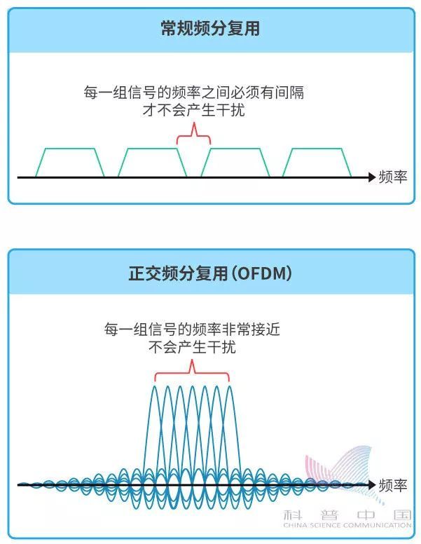这叫作正交频分复用(OFDM)。