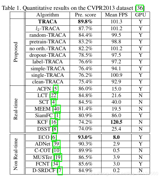 使用VOC2012分类图像数据集的来预训练expert auto-encoders和context-aware network。使用CVPR2013数据集(51 target,50 videos),TPAMI2015(100 targets,98 videos)来评估该框架,其中每一帧都包含了真实目标的检测框。