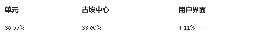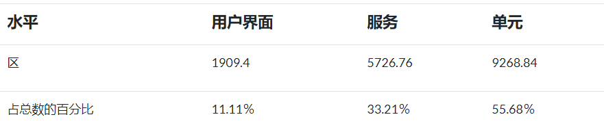 对于UI级别,这剩下4-11%的测试自动化。如果UI级别占测试自动化的4-11%,并且这些数字告诉我们,单元和服务级别测试的大小通常相等,则基于测试金字塔的测试自动化的合理分布将大致为: