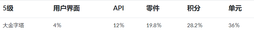 从顶部(UI级别)开始,我们可以找出每个级别的大小以及它所占整个金字塔的百分比。