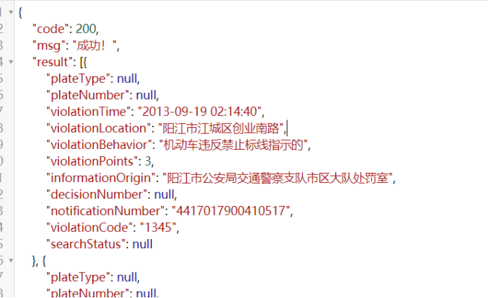 然后是一层字典,再根据key取values即可,即violationcode取参数1345