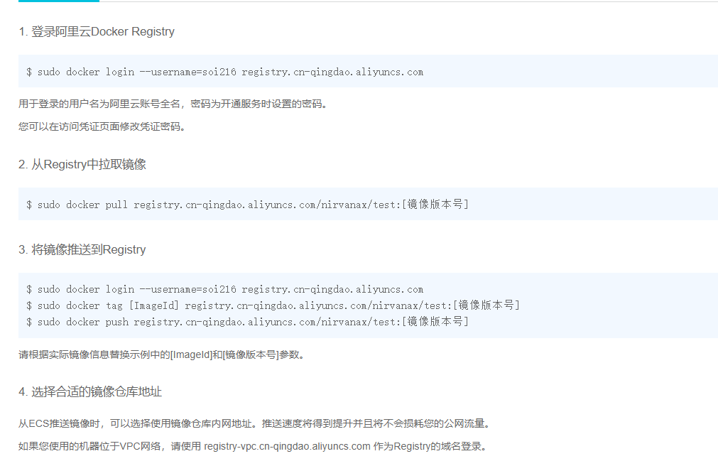 使用阿里云容器镜像的参考官方指南即可!!!(即上图)