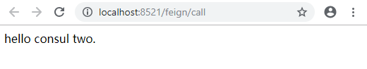 启动成功之后,多次访问 http://localhost:8521/feign/call,结果如同之前一样交替返回 hello consul 和 hello consul two。