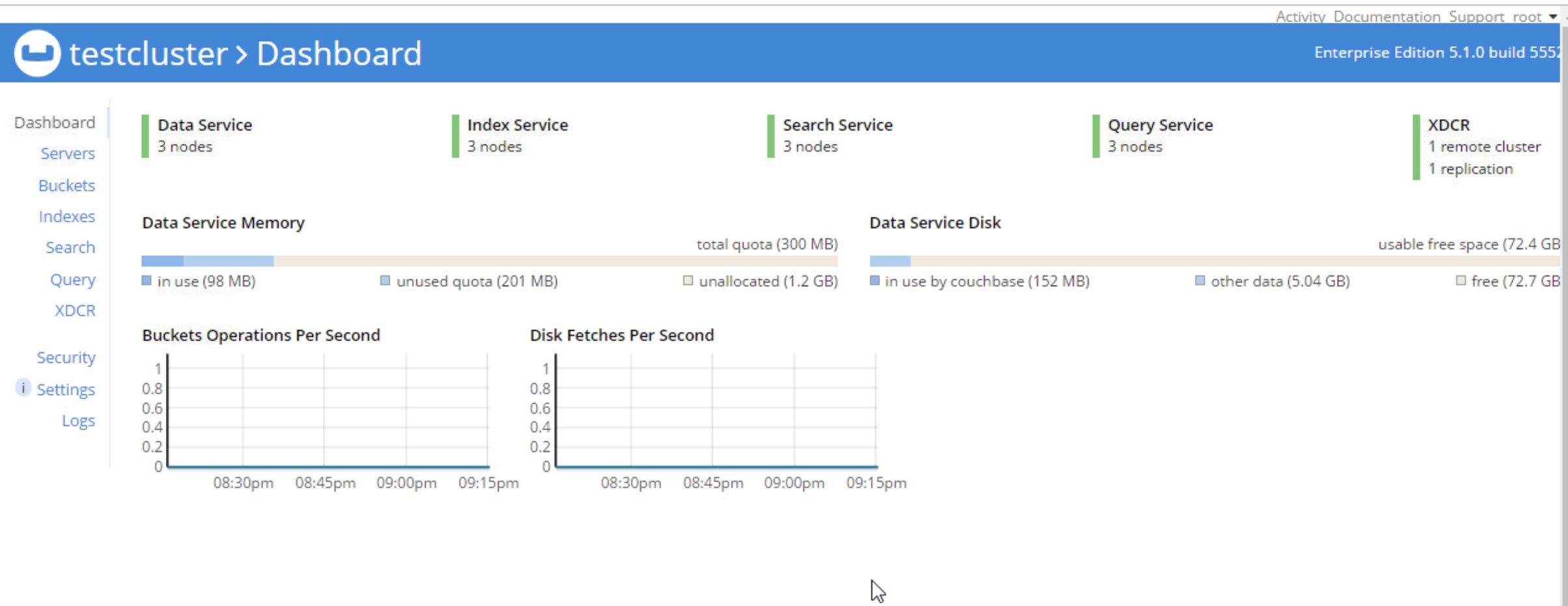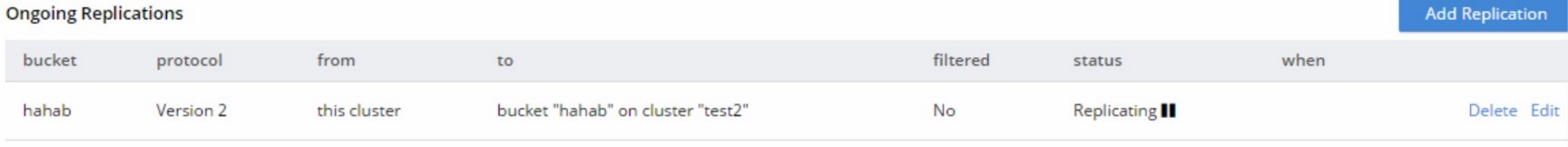 XDCR:跨集群的同步管理界面,注意和replicate的区别,一个是集群内的复制,一个是跨集群(一般是异地)的同步