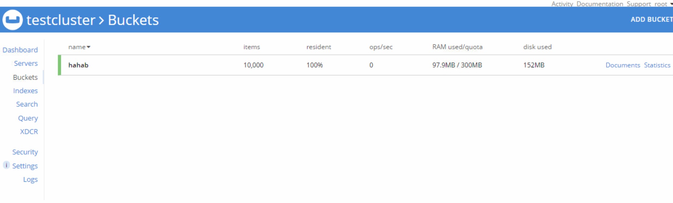 Buckets:类似于mysql数据库的概念,注意 CouchBase中没有表的概念,创建了Bucket直接往里面插入数据。另外这里的Bucket要跟后面说的VBucket区分开来。