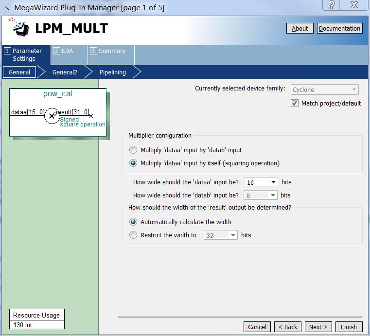 使用Quartus-II中的MegaWizard配置平方计算电路,其结构如下图所示。