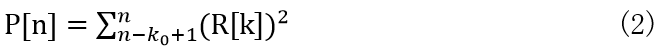 是互相关算法部分,其FPGA实现已在前文中介绍过。根据前文定义的符号,将离散化后的互相关信号记为R[k]。进一步离散化后可将(1)改写为如下FPGA能够实现的形式: