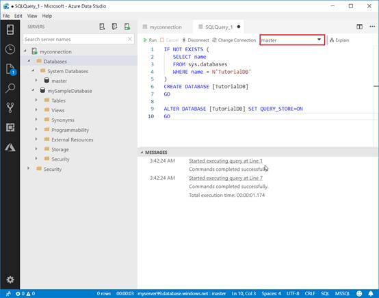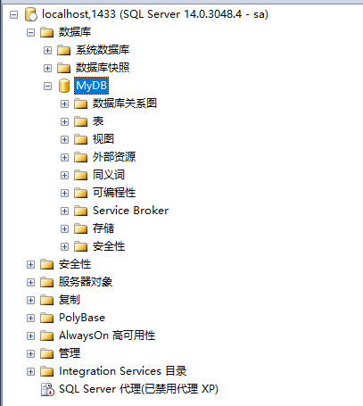 执行结果如上图所示。我们通过SSMS可以查看到我们刚才创建的数据库: