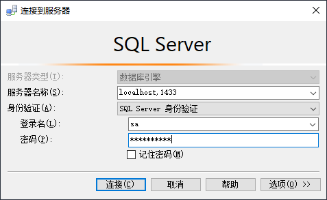注意:密码应符合 SQL Server 默认密码策略,否则容器无法设置 SQL Server,将停止工作。 默认情况下,密码必须至少为 8 个字符长,且包含三个以下四种字符集的字符:大写字母、 小写字母、 十进制数字和符号。 你可以通过执行 docker logs 命令检查错误日志。