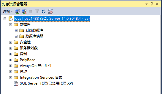 安装完成之后,我们就可以启动SSMS来进行管理我们的数据库了。