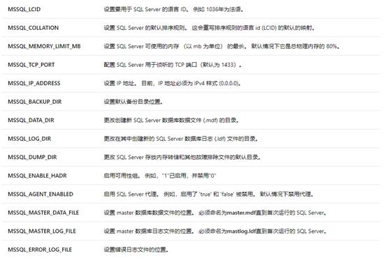 · MSSQL_PID = <your_product_id | edition_name>(用于设置产品ID(PID)或版本,默认值:Developer)