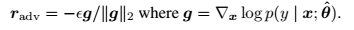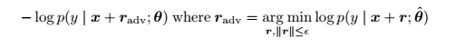 然后定义模型的损失函数,令输入为x,参数为θ,Radv为对抗训练因子,损失函数为: