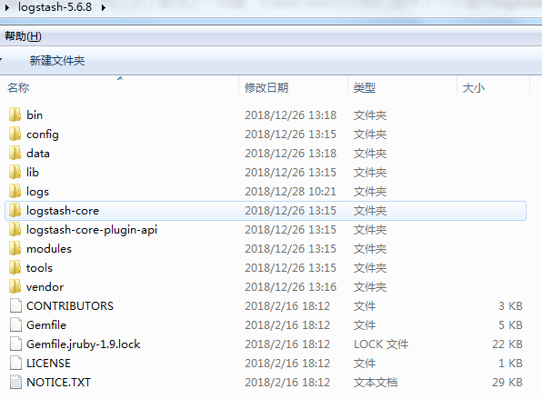 其次如果使用logstash来同步数据库,推荐使用Elasticsearch 5.X的版本,因为Elasticsearch 2.X的版本需要我们集成logstash-jdbc-input才能同步数据库。下载后直接解压就能使用,解压后的文件如图所示。