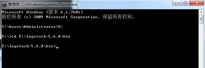 第二步:打开一个新的终端窗口,进入到E:\logstash-5.6.8\bin目录下