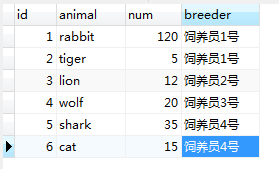 首先我们在数据库中添加一张zoo表,并添加几条数据: