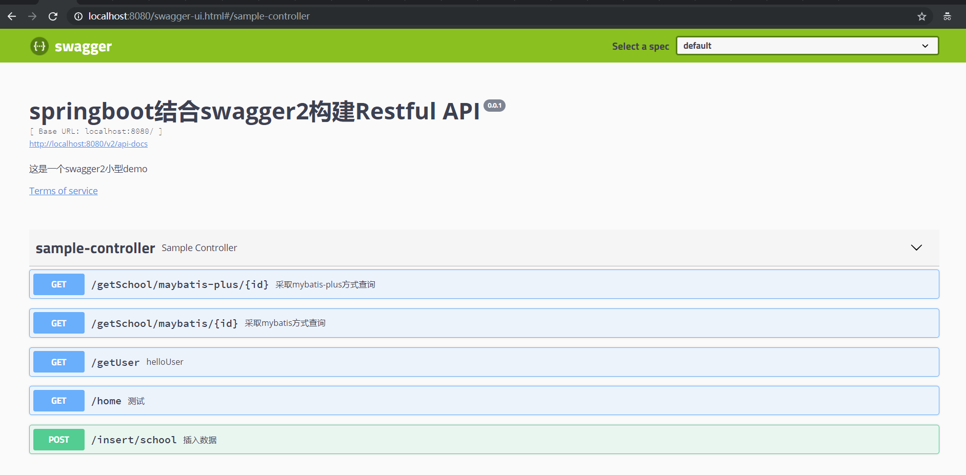 启动成功后访问:http://localhost:8080/swagger-ui.html#/,显示下图效果即配置成功。