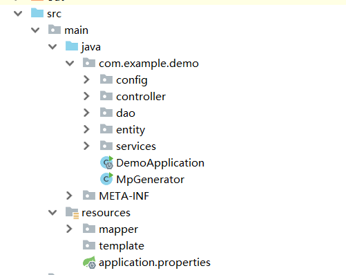 调用MpGenerator.java的主函数生成定义好MVC层结构(MpGenerator定义了文件位置,文件名称,依赖关系等属性)。