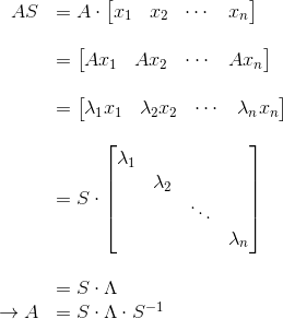 将这两个矩阵相乘,我们就可以得到对角化公式
