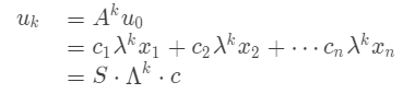 根据上一讲的内容,我们已经知道了如何求解特征值和特征向量,并且在讲行列式的时候我们就已经说明了行列式的存在就是为了特征值和特征向量,那么特征值和特征向量的作用是什么呢?答案是,他们将使得求解矩阵的幂特别简便。