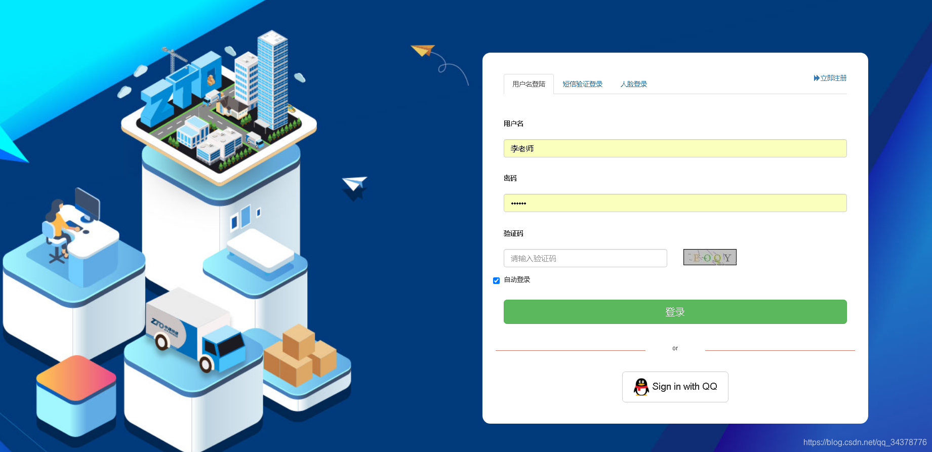 - 登陆与注册: 用户名密码、短信验证码、人脸识别登录、QQ登录