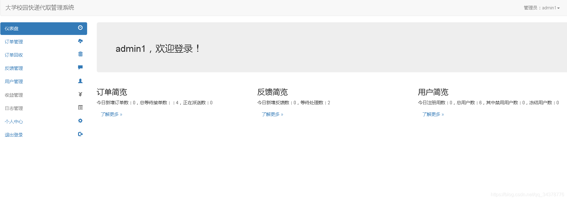- 系统管理员:用户管理、订单管理、反馈管理